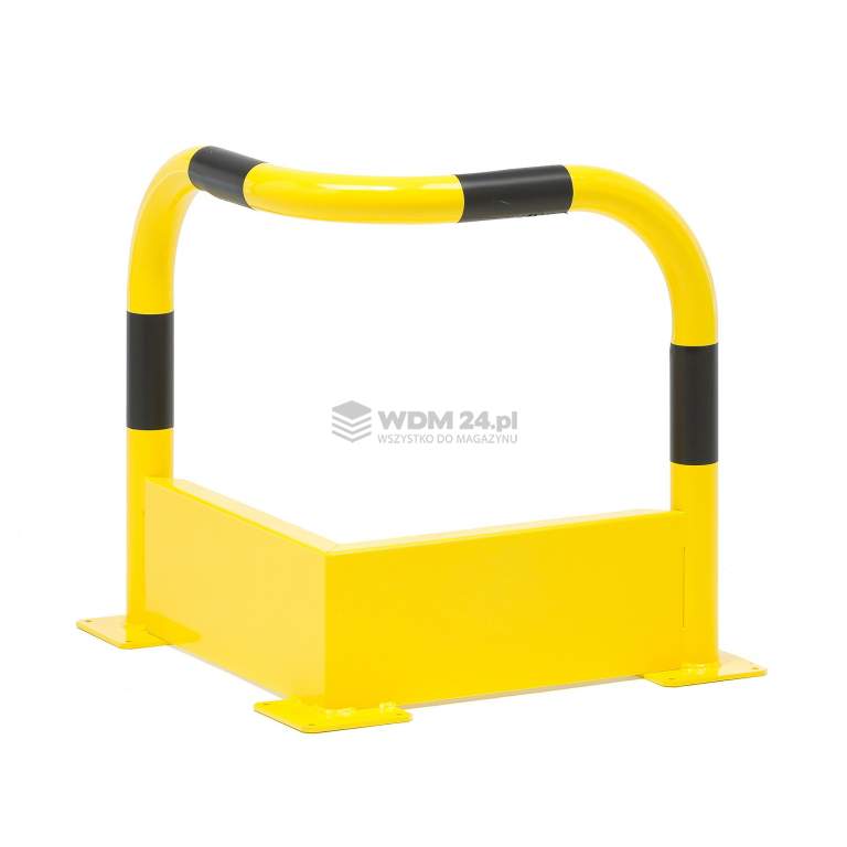 Bariera ochronna ma u podstawy metalowy panel, który zapobiega uszkodzeniom spowodowanym przez wózek widłowy. Rozwiązanie szczególnie przydatne do ochrony rur, pionowego okablowania itp. Bariera została zaprojektowana do ustawienia w narożniku pomieszczenia lub połączenia z barierami prostymi do szerszego i bardziej wszechstronnego zastosowania.