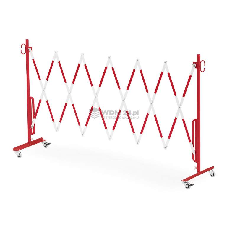 Szybkie odgradzanie niebezpiecznych przestrzeni. Składana konstrukcja zapewnia oszczędność miejsca podczas przechowywania. Pętle umożliwiają połączenie kilku barier. Wykonane z 4 mm stali. Dostępne na kółkach, bez kółek, lub z kółkami i uchwytem ściennym. Wysokość 1050 mm. Długość po rozłożeniu: 3000 mm. .