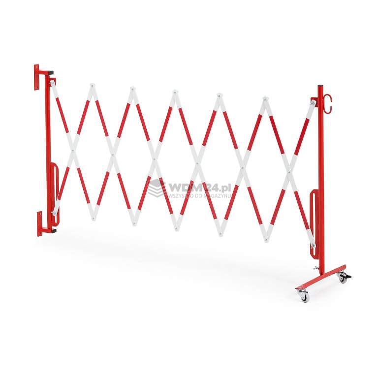 Funkcjonalne odgrodzenie lub brama do tworzenia stałych barier. Produkt można składać i rozciągać jak harmonijkę. Dzięki temu zajmuje niewiele miejsca, gdy nie jest używany. Wyposażony w koła i elementy umożliwiające mocowanie do ściany. Stwórz barierę lub zakaz wjazdu przy pomocy praktycznego i elastycznego ogrodzenia. Prezentowane ogrodzenie to praktyczne rozwiązanie do tworzenia barier w niebezpiecznych rejonach lub wokół obszarów pracy ciężkiego sprzętu, np. budowlanego. Przyda się również w każdym innym miejscu, gdzie odbywają się ryzykowne prace. Nasza beriera posiada dwa koła dla płynnego i efektywnego transportu. W zestawie także zaczep umożliwiający montaż bariery do ściany.