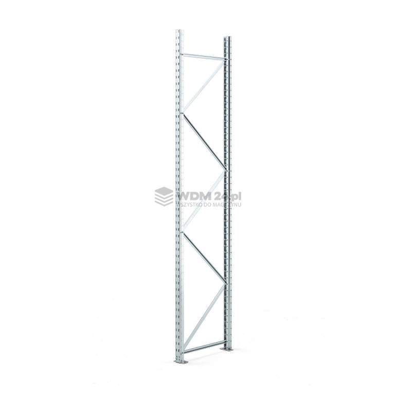Rama regału magazynowego TOUGH. Słupy z perforacją. Rama z perforowanymi słupkami, dzięki którym półki można umieszczać na dowolnej wysokości. Rama końcowa jest wykonana z mocnej, ocynkowanej blachy stalowej. Dodaj belki nośne i wypełnienie półek i zamocuj do modułu podstawowego lub dodatkowego. Dzięki ramie można także samodzielnie zbudować moduł regału – moduł podstawowy wymaga dwóch ram oraz belek nośnych i wypełnienia półek.
