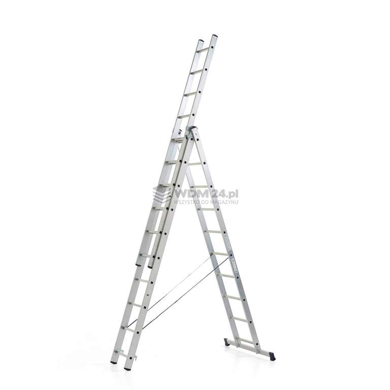 Trzyczęściowa drabina combo, którą można stosować zarówno jako drabinę rozsuwaną, jak i wolnostojącą. Wyposażona w elementy chroniące podłogę i antypoślizgowe szczeble. Przetestowane i zatwierdzone zgodnie z normą EN-131. Tej trzyczęściowej drabiny combo można używać jako drabiny wolnostojącej lub przedłużającej. Praktyczne rozwiązanie zarówno do użytku profesjonalnego, jak i domowego!
