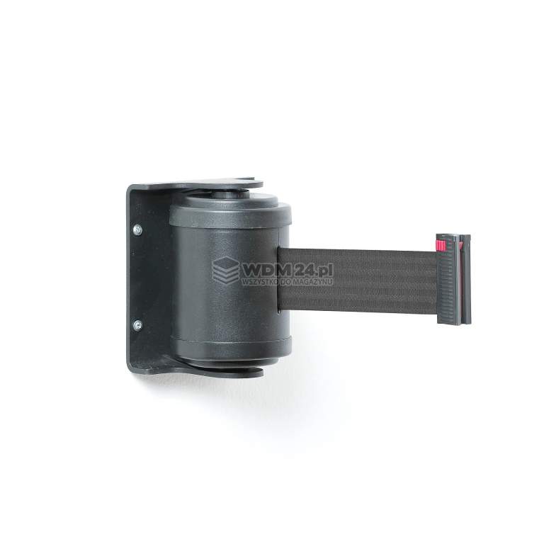 Kaseta ścienna z taśmą z funkcją automatycznego powrotu. Możliwość obrotu w obie strony o 180˚ pozwala dostosować kąt zamocowania taśmy. Kaseta zawiera także uchwyt do zamocowania końca innej taśmy. Taśmę można także przymocować do słupka odgradzającego. Uchwyt z długą taśmą to doskonałe rozwiązanie do tworzenia stałych barier odgradzających. Użyj uchwytu do tworzenia barier i kierowania kolejkami oraz ruchem pieszych, klientów itp. Przykłady środowisk, gdzie sprawdzą się bariery to między innymi magazyny, warsztaty, kina, sklepy, lotniska itp.