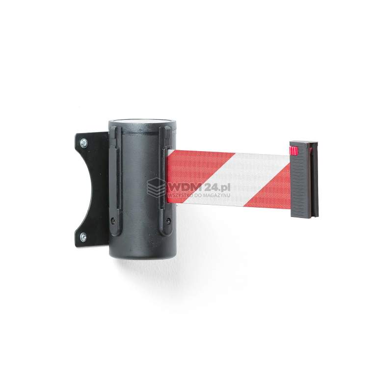 Rozciągliwa, sprężynowa bariera w formie taśmy w obudowie montowanej do ściany. W zestawie znajduje się uchwyt ścienny do zamocowania taśmy na drugim końcu. Taśmę można także przymocować do słupka odgradzającego. Ta montowana na ścianie kaseta z rozciągliwą taśmą to idealne rozwiązanie, jeśli potrzebujesz stałej bariery oszczędzającej miejsce. Produkt nadaje się do tworzenia barier w niemal każdej przestrzeni, takiej jak magazyny, warsztaty, kina, sklepy czy lotniska.