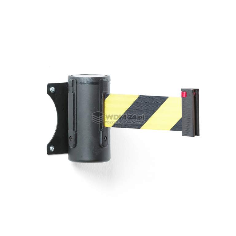 Rozciągliwa, sprężynowa bariera w formie taśmy w obudowie montowanej do ściany. W zestawie znajduje się uchwyt ścienny do zamocowania taśmy na drugim końcu. Taśmę można także przymocować do słupka odgradzającego. Ta montowana na ścianie kaseta z rozciągliwą taśmą to idealne rozwiązanie, jeśli potrzebujesz stałej bariery oszczędzającej miejsce. Produkt nadaje się do tworzenia barier w niemal każdej przestrzeni, takiej jak magazyny, warsztaty, kina, sklepy czy lotniska.