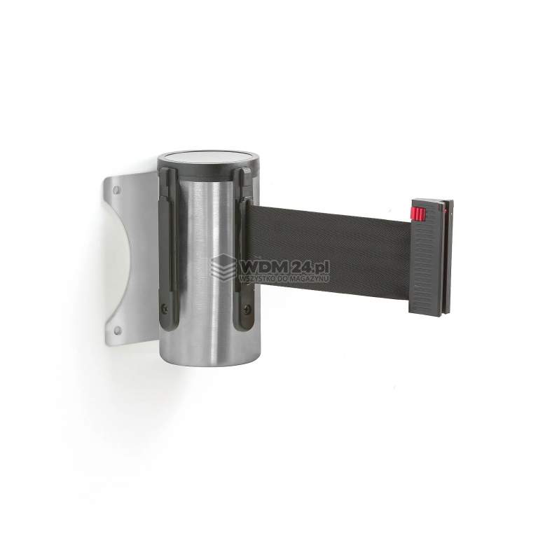 Uchwyt ścienny z taśmą z funkcją automatycznego powrotu. Zestaw zawiera uchwyt ścienny i taśmę. Taśmę można także przymocować do słupka odgradzającego. Uchwyt z taśmą to doskonałe rozwiązanie do tworzenia stałych, oszczędzających miejsce barier odgradzających. Przykłady środowisk, gdzie sprawdzą się bariery to między innymi magazyny, warsztaty, kina, sklepy, lotniska itp.