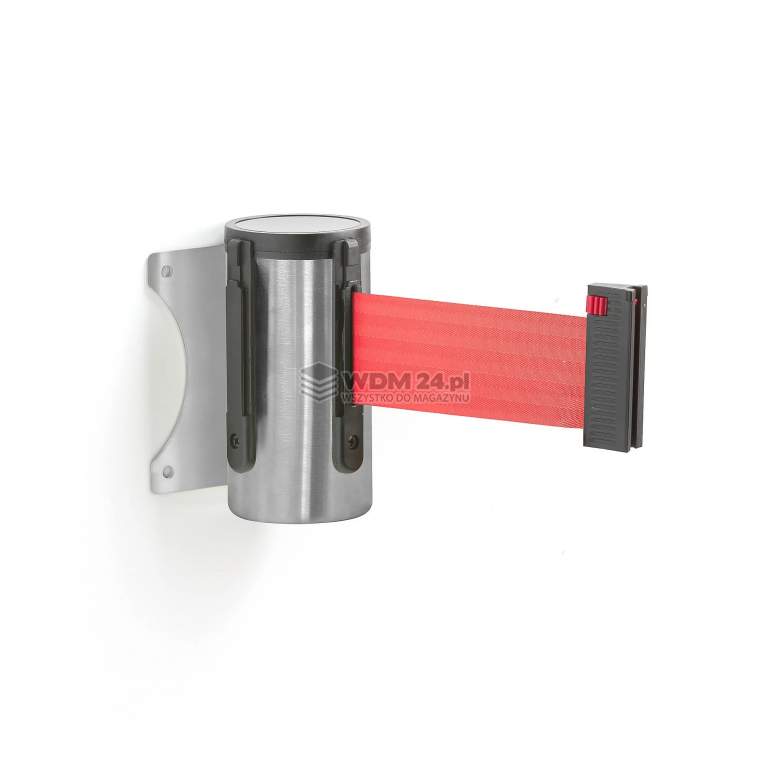 Uchwyt ścienny z taśmą z funkcją automatycznego powrotu. Zestaw zawiera uchwyt ścienny i taśmę. Taśmę można także przymocować do słupka odgradzającego. Uchwyt z taśmą to doskonałe rozwiązanie do tworzenia stałych, oszczędzających miejsce barier odgradzających. Przykłady środowisk, gdzie sprawdzą się bariery to między innymi magazyny, warsztaty, kina, sklepy, lotniska itp.