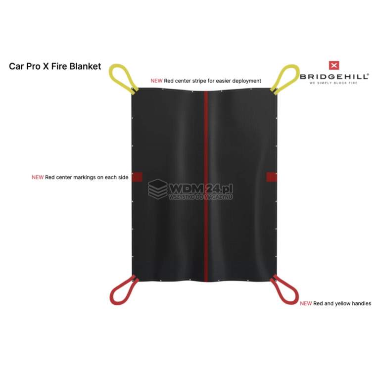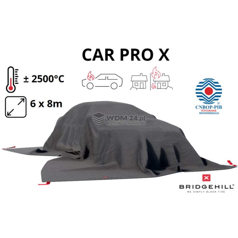 Przedstawiamy najbardziej zaawansowane narzędzie do walki z pożarami pojazdów na rynku. Bridgehill Car PRO X to koc gaśniczy klasy profesjonalnej, zaprojektowany do wielokrotnego użytku. Wytrzymuje ekstremalne temperatury i jest w stanie obsłużyć nawet 30 pożarów samochodów.