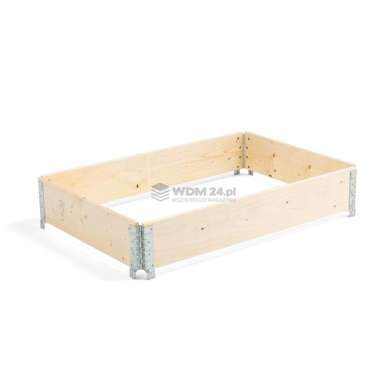 Kołnierz paletowy z solidnymi zawiasami. Kosz paletowy ułatwiający transport towarów na paletach. Koszyki paletowe z możliwością sztaplowania, dla zwiększenia krawędzi wokół towarów. Podczas gdy kosz nie jest używany, może być złożony dla zwiększenia miejsca przechowywania. Kosz wykonany z drewna sosnowego, bardzo wytrzymałego, zapewniającego dobrą ochronę towaru przed zniszczeniem. Wytrzymała pokrywa dostępna jako akcersoria (sprzedawane oddzielnie).