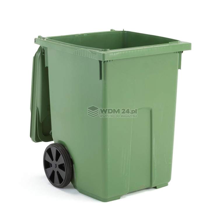 Kosz na śmieci z dwoma dużymi, gumowymi kołami i praktycznym uchwytem. Łatwy do przemieszczenia, opróżnienia i czyszczenia. Wykonany z materiałów odpornych na promienie UV. Klasyczny, trwały kosz na śmieci. Ergonomiczny design jest wygodny do obsługi przez użytkownika oraz śmieciarkę. Wytrzymały, wygodny uchwyt i duże gumowe koła ułatwiają obsługę pojemnika w warunkach zimowych i pokonywanie przeszkód, progów, krawężników itp. Pojemnik zaprojektowano, aby ułatwić opróżnianie. Zgodny ze standardem AFNOR. Wykonany z wysokiej jakości polietylenu (HDPE), odpornego na działanie promieni UV. Pojemność 370 L. Pojemnik dostępny w wielu kolorach, co pomaga w segregacji odpadów.