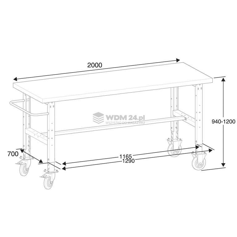 Szeroki Mobilny Stół Roboczy TRUST ze Stalowym Blatem (2000x760 mm) – 200 kg