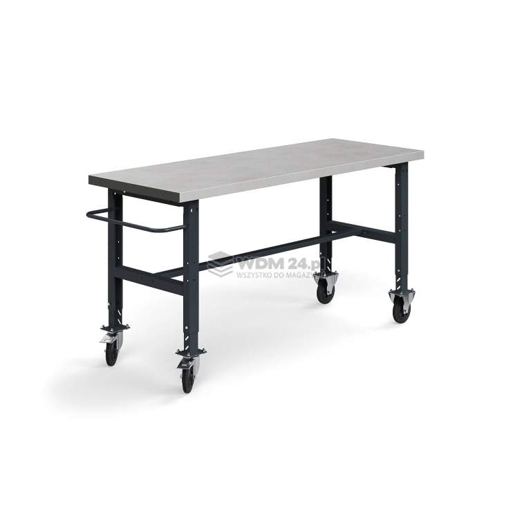 Przestronny mobilny stół roboczy TRUST (2000x760 mm) o nośności 200 kg. Wyposażony w niezniszczalny blat stalowy (50 mm) odporny na płyny przemysłowe i uderzenia, szeroką regulację wysokości oraz wytrzymałe koła z pełnej gumy. Idealne, łatwo konfigurowalne stanowisko do ciężkich prac serwisowych i montażowych wymagających dużej powierzchni.