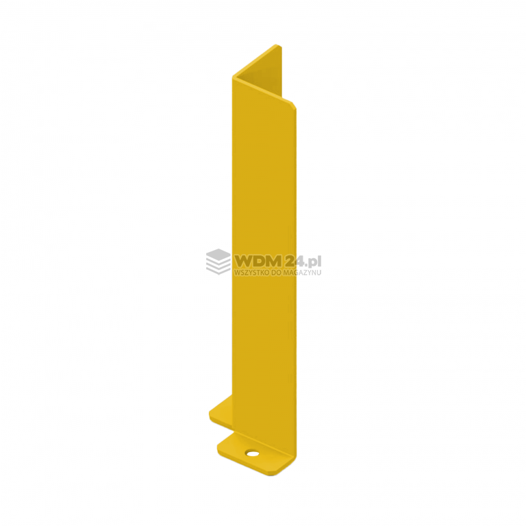 Odbojnica stalowa przystosowana do ochrony słupa regałów półkowych, maszyn, urządzeń oraz elementów hal produkcyjnych, magazynowych i sklepowych. Mocowana do posadzki kotwami, które należy osobno zakupić (dostepne tutaj).