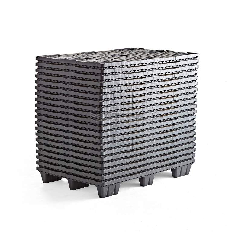 Zastaw 20 sztaplowanych plastikowych palet z zabezpieczeniem i 60-milimetrowymi krawędziami bocznymi, co chrini ładunki przed przesuwaniem się. Doskonałe rozwiązanie do eksportu w krajach, które nie akceptują palet drewnianych. Produkt odporny na temperatury w zakresie od -30°C do +40°C. Stabilna paleta plastikowa przystosowana do częstego użytkowania. Doskonałe rozwiązanie do eksportu w krajach, które nie akceptują palet drewnianych.
