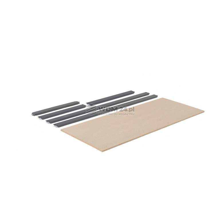 Dodatkowa półka do regału COMBO. Trwała półka z 16 mm płyty wiórowej i mocnej belki stalowej. Belki są lakierowane proszkowo na kolor ciemnoszary. Wykończenie lakierem proszkowym zapewnia optymalną wytrzymałość i odporność na uderzenia. Perforacja na słupkach umożliwia zawieszenie półek na dowolnej wysokości. Wystarczy użyć gumowego młotka - nie potrzeba śrub!