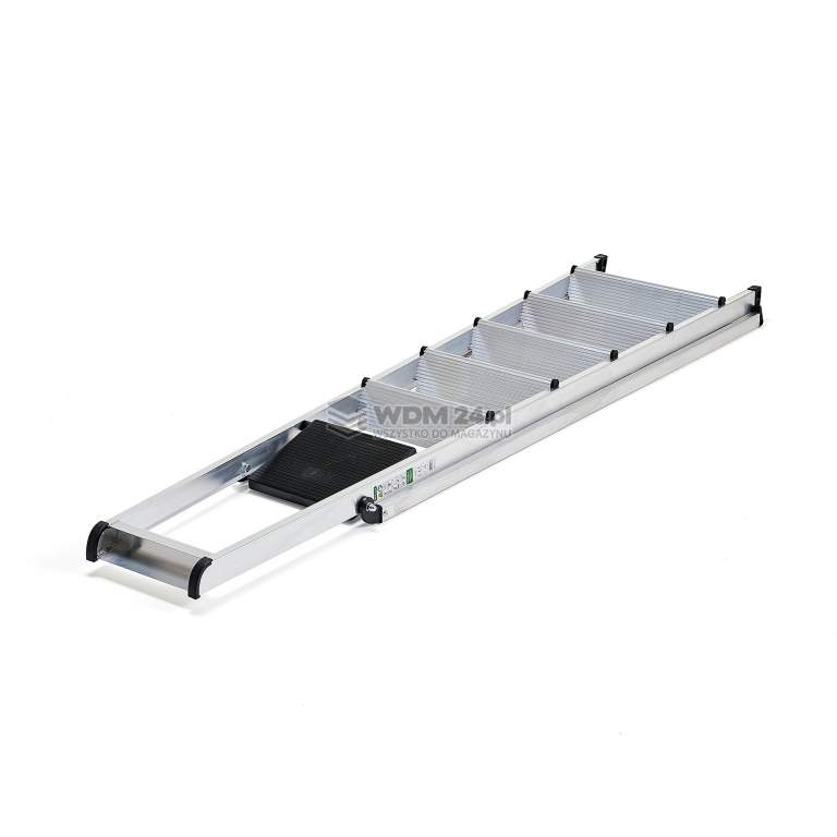 Solidna profesjonalna drabina wyposażona w blokadę rozporową zabezpieczającą przed rozsunięciem, antypoślizgowe stopki i poręcz z półką na narzędzia. Niezwykle głębokie stopnie i szeroka platforma. Produkt testowany i certyfikowany zgodnie z normą EN 131. Stabilna i trwała drabina do wszechstronnego zastosowania w trudnych środowiskach. Drabina została wykonana z solidnych profili aluminiowych. Oznacza to, że jest lekka i wytrzymała.