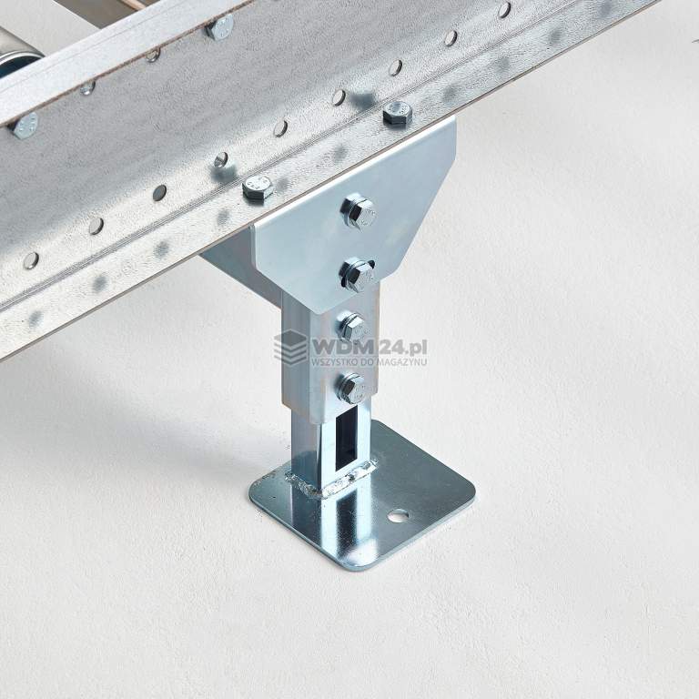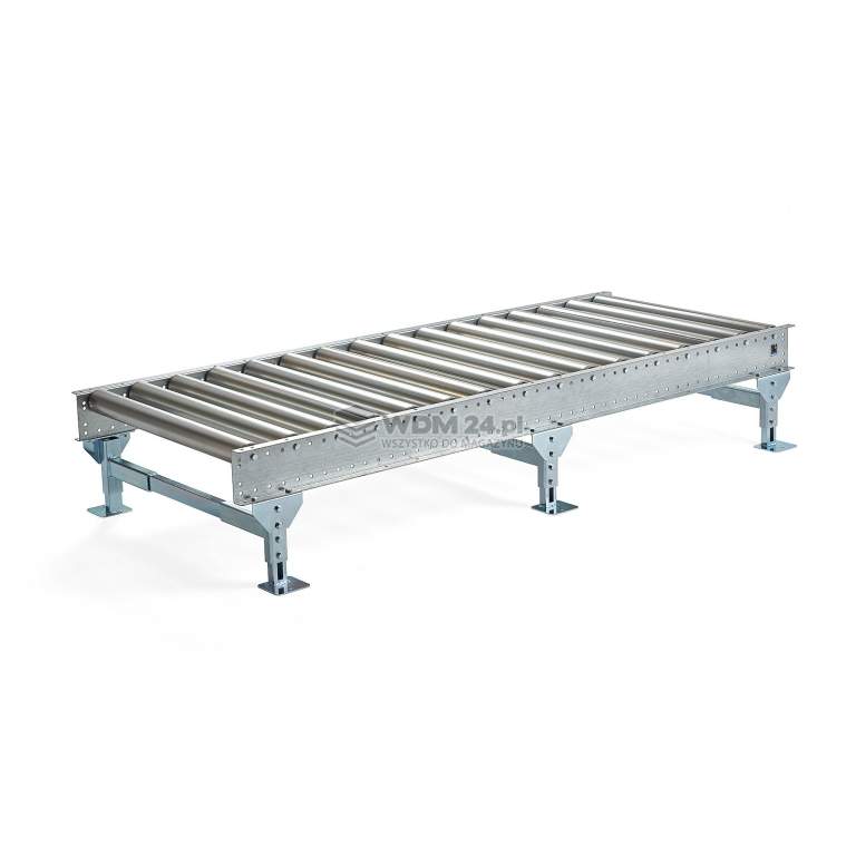 Przenośnik rolkowy bez napędu do obsługi palet. Maksymalna nośność przenośnika wynosi 1000 kg w przypadku, gdy podpory są od siebie oddalone o 1,2 m lub 440 kg, gdy podpory są oddalone od siebie o 2,4 m. Solidny przenośnik do przenoszenia palet w magazynach, systemach logistycznych i przemysłowych oraz do obsługi różnych materiałów. Przenośnik ułatwia pracę z paletami i poprawia wydajność pracy. Maksymalna nośność przenośnika wynosi 1000 kg w przypadku, gdy podpory są od siebie oddalone o 1,2 m lub 440 kg, gdy podpory są oddalone od siebie o 2,4 m. Przenośnik rolkowy wyposażono w profile boczne ze stali lakierowanej proszkowo oraz metalowe rolki z gwintem wewnętrznym M10x20.