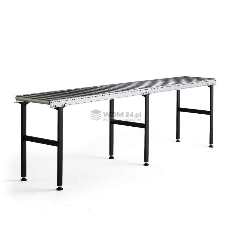 Przenośnik rolkowy o stałej długości, który można dostosować do wymaganej wysokości. Przenośnik posiada solidną konstrukcję i można go łatwo łączyć z innymi sekcjami. Przenośnik rolkowy o stałej długości bez napędu (grawitacyjny). Przenośnik rolkowy wspomaga transport pudeł, skrzyń, drewna, stali i innych towarów o gładkiej podstawie. Solidna stalowa konstrukcja i solidne wzmocnienia między nogami zapewniają wysoką stabilność. Ponieważ przenośnik ma regulowaną wysokość, można go łatwo dostosować, aby w razie potrzeby ustawić go na idealnej wysokości roboczej. Możesz łatwo połączyć kilka przenośników, aby uzyskać potrzebną długość.