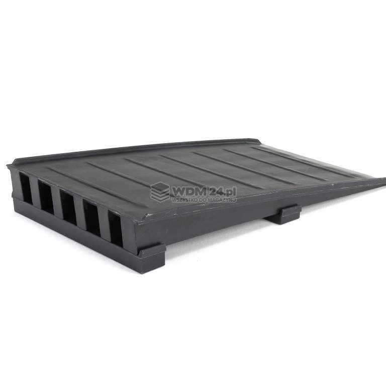 Do palet wychwytowych na beczki. Rampę wykonano z trwałego plastiku. Pasuje do podestów na beczki. Ułatwia obsługę beczek. Dzięki rampie łatwiej umieścić beczki na podeście lub zdjąć je bez pomocy sprzętu podnoszącego.