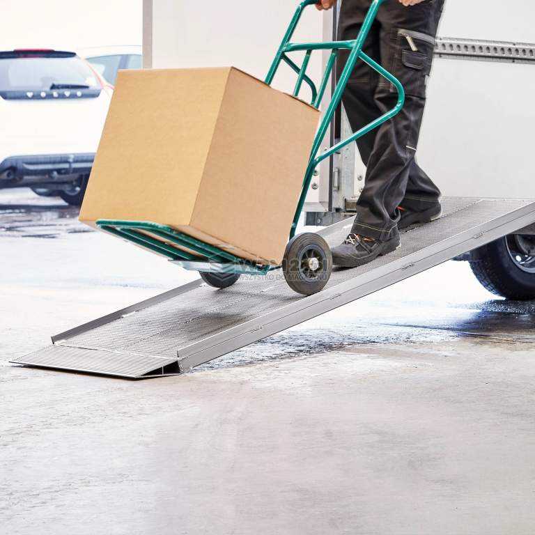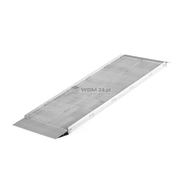 Aluminiowa rampa najazdowa z podniesionymi krawędziami dla lepszej przyczepności, ryflowana powierzchnia. Aluminiowa rampa najazdowa idealna do przeładunku ręcznych wózków, skuterów, rowerów i wielu innych. Dla zwiększenia bezpieczeństwa podczas wchodzenia lub schodzenia, rampa ma podniesione krawędzie (25 mm) i antypoślizgową ryfowaną powierzchnię. Wykonana z aluminium, lekka i stabilna.