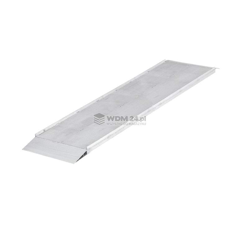 Aluminiowa rampa najazdowa z podniesionymi krawędziami dla lepszej przyczepności, ryflowana powierzchnia. Aluminiowa rampa najazdowa idealna do przeładunku ręcznych wózków, skuterów, rowerów i wielu innych. Dla zwiększenia bezpieczeństwa podczas wchodzenia lub schodzenia, rampa ma podniesione krawędzie (25 mm) i antypoślizgową ryfowaną powierzchnię. Wykonana z aluminium, lekka i stabilna.