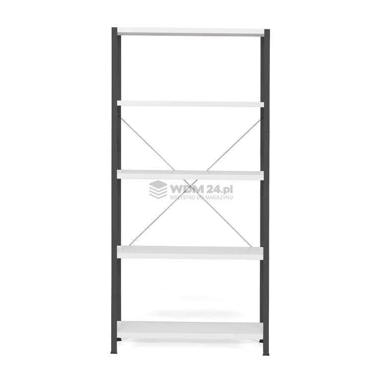 Funkcjonalny system regałów do przechowywania lżejszych przedmiotów w biurze, archiwum i magazynie. Regały posiadają stopki chroniące podłogę oraz regulowane półki z szynami wzmacniającymi. Regał można rozbudować w system przy pomocy modułów dodatkowych (sprzedawane oddzielnie). Prezentowany regał wykonano z blachy stalowej lakierowanej proszkowo. Wykończenie lakierem proszkowym zapewnia doskonałą trwałość. Regały są łatwe w montażu bez użycia śrub i narzędzi. Wystarczy zahaczyć półki na dowolnej wysokości między słupkami. Łatwa regulacja wysokości półek w odstępach co 40 mm dla większej funkcjonalności. Półki wyposażone w trwałe szyny wzmacniające w spodniej części. Regał posiada także stopki chroniące podłogę przed uszkodzeniami. System jest bardzo elastyczny i pozwala na łatwą rozbudowę. Można dokupić dowolną liczbę modułów dodatkowych oraz zwiększyć liczbę półek. Moduły dodatkowe zostały zaprojektowane z myślą o montażu bezpośrednio do ram modułów podstawowych, co pozwala zaoszczędzić miejsce.