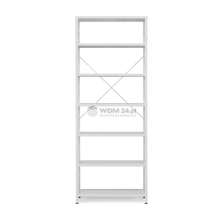 Funkcjonalny system regałów do przechowywania lżejszych przedmiotów w biurze, archiwum i magazynie. Regały posiadają stopki chroniące podłogę oraz regulowane półki z szynami wzmacniającymi. Regał można rozbudować w system przy pomocy modułów dodatkowych (sprzedawane oddzielnie). Prezentowany regał wykonano wykonano z blachy stalowej lakierowanej proszkowo. Wykończenie lakierem proszkowym zapewnia doskonałą trwałość. Regały są łatwe w montażu bez użycia śrub i narzędzi. Wystarczy zahaczyć półki na dowolnej wysokości między słupkami. Łatwa regulacja wysokości półek w odstępach co 40 mm dla większej funkcjonalności. Półki wyposażone w trwałe szyny wzmacniające w spodniej części. Regał posiada także stopki chroniące podłogę przed uszkodzeniami. System jest bardzo elastyczny i pozwala na łatwą rozbudowę. Można dokupić dowolną liczbę modułów dodatkowych oraz zwiększyć liczbę półek. Moduły dodatkowe zostały zaprojektowane z myślą o montażu bezpośrednio do ram modułów podstawowych, co pozwala zaoszczędzić miejsce.