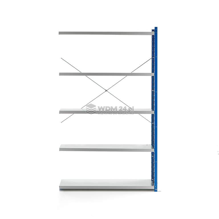 Każdy moduł dodatkowy posiada jedną ramę oraz komplet półek. Moduł dodatkowy łatwo połączyć z modułem podstawowym. Wystarczy zahaczyć półki modułu dodatkowego na ramie sąsiadującego regału.