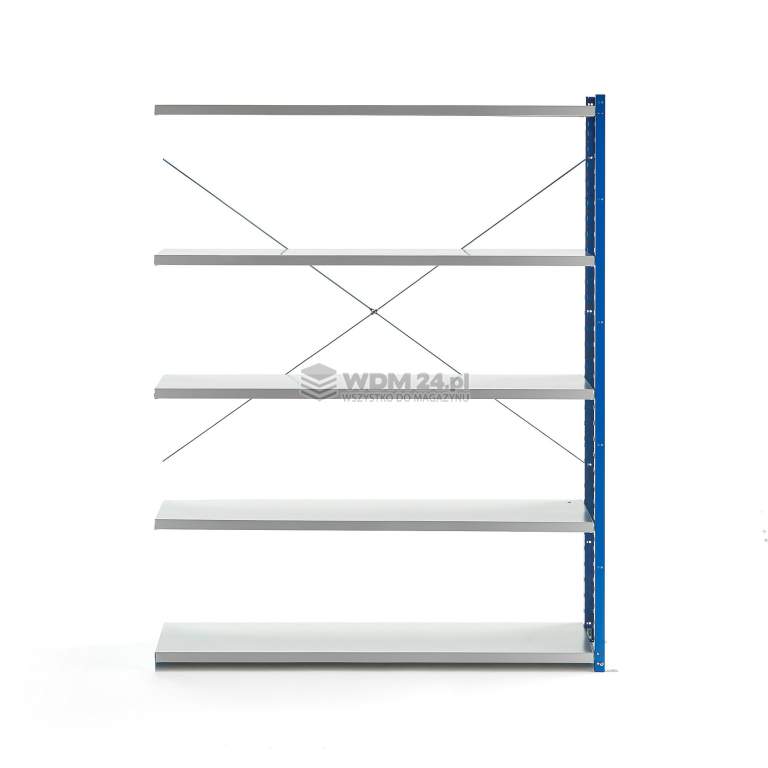 Każdy moduł dodatkowy posiada jedną ramę oraz komplet półek. Moduł dodatkowy łatwo połączyć z modułem podstawowym. Wystarczy zahaczyć półki modułu dodatkowego do ramy sąsiadującego regału.