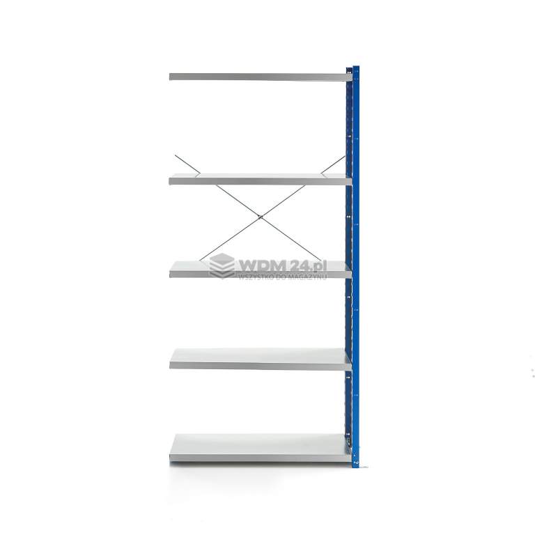 Każdy moduł dodatkowy posiada jedną ramę oraz komplet półek. Moduł dodatkowy łatwo połączyć z modułem podstawowym. Wystarczy zahaczyć półki modułu dodatkowego na ramie sąsiadującego regału.