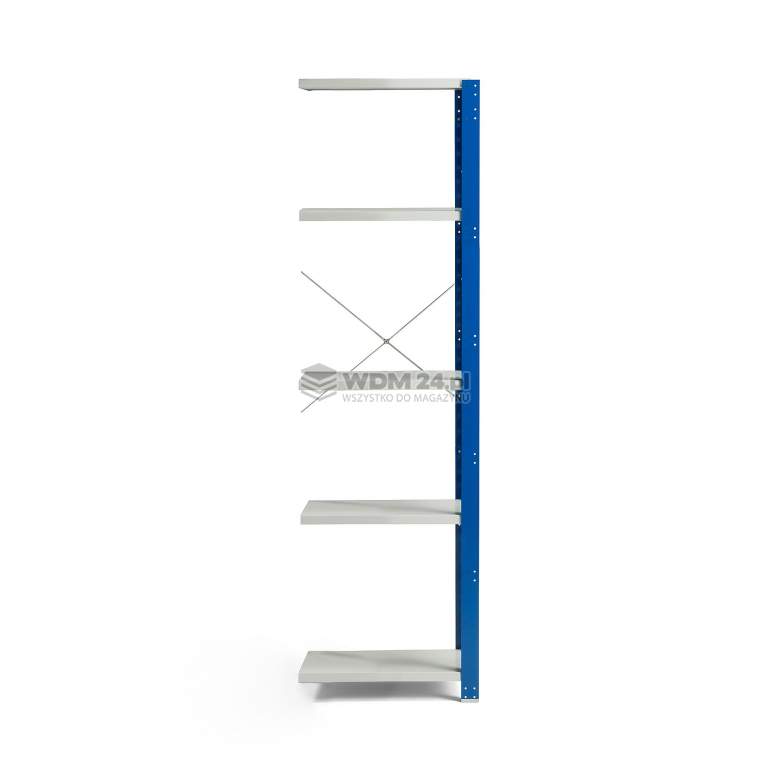 Moduł dodatkowy dostarczamy z pięcioma półkami. To Ty decydujesz na jakiej wysokości chcesz umieścić półki. Można je przestawiać w górę i w dół w odstępach co 50 mm. Do montażu nie potrzeba narzędzi - wystarczy zahaczyć półki na wybranej wysokości. Maksymalne obciążenie każdej półki do 150 kg przy równomiernym rozmieszczeniu ładunku. Moduł podstawowy dostarczamy ze stężeniem tylnym oraz stężeniami bocznymi dla dodatkowej stabilności. Słupki wyposażone w stopki umożliwiające zakotwienie w podłodze.