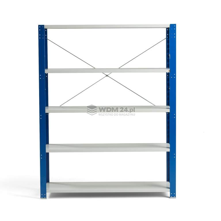 Moduł podstawowy dostarczamy ze stężeniem tylnym oraz stężeniami bocznymi dla dodatkowej stabilności. Słupki boczne wyposażone są w stopki, które pozwalają zakotwić regał w podłodze.