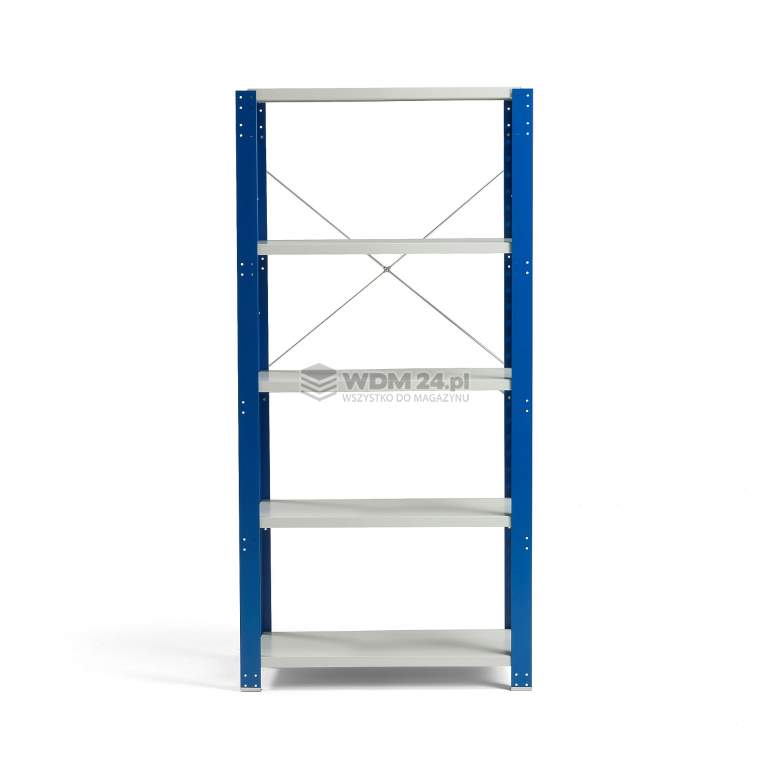 Moduły podstawowe wykonano z blachy stalowej lakierowanej proszkowo. Wykończenie lakierem proszkowym zapewnia trwałość oraz odporność na zarysowania i intensywne użytkowanie w trudnych środowiskach. Półki można zamontować zgodnie z wymaganiami i przestawiać w górę lub w dół w odstępach co 50 mm. Do montażu nie potrzeba narzędzi - wystarczy zahaczyć półki na wybranej wysokości. Maksymalne obciążenie każdej półki wynosi 150 kg przy równomiernym rozmieszczeniu ładunku. Moduł podstawowy dostarczamy ze stężeniem tylnym oraz stężeniami bocznymi dla dodatkowej stabilności. Słupki boczne wyposażone są w stopki, które pozwalają zakotwić regał w podłodze.