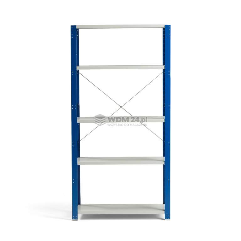 Moduły podstawowe wykonano z blachy stalowej lakierowanej proszkowo. Wykończenie lakierem proszkowym zapewnia trwałość oraz odporność na zarysowania i intensywne użytkowanie w trudnych środowiskach. Półki można zamontować zgodnie z wymaganiami i przestawiać w górę lub w dół w odstępach co 50 mm. Do montażu nie potrzeba narzędzi - wystarczy zahaczyć półki na wybranej wysokości. Maksymalne obciążenie każdej półki wynosi 150 kg przy równomiernym rozmieszczeniu ładunku. Moduł podstawowy dostarczamy ze stężeniem tylnym oraz stężeniami bocznymi dla dodatkowej stabilności. Słupki boczne wyposażone są w stopki, które pozwalają zakotwić regał w podłodze.