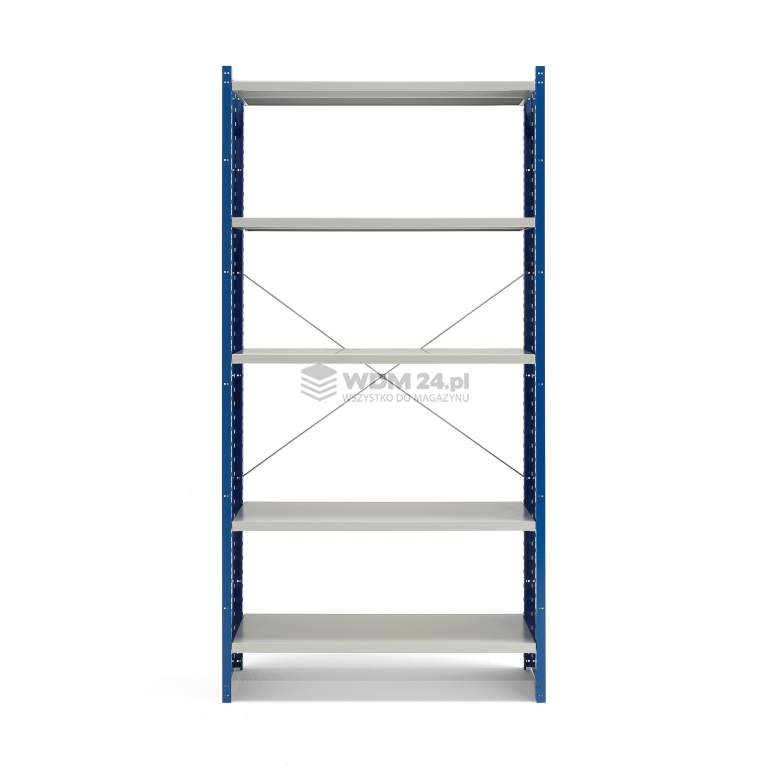 Regał półkowy MIX należy do systemu regałów o charakterystycznych zamkniętych ramach. Nowoczesny wygląd nadaje mu wyrazista kolorystyka. Ramy regału pomalowane są proszkowo na kolor niebieski (RAL 5005), natomiast półki występują w kolorze szarym (RAL 7035).