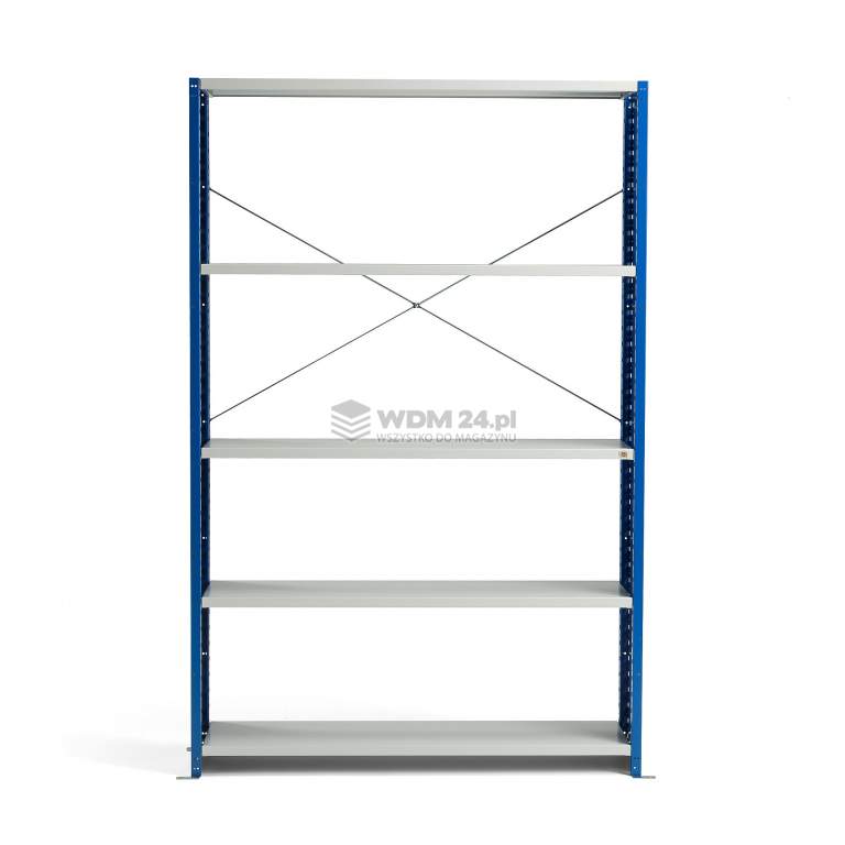 Moduł podstawowy dostarczamy ze stężeniem tylnym oraz stężeniami bocznymi dla dodatkowej stabilności. Słupki boczne wyposażone są w stopki, które pozwalają zakotwić regał w podłodze.