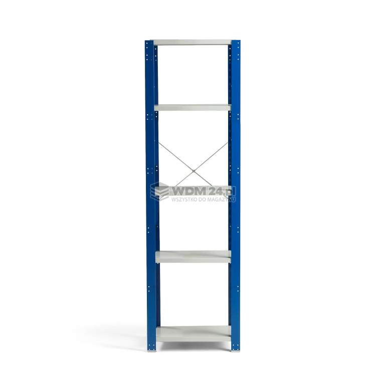 Moduł podstawowy wykonano z blachy stalowej lakierowanej proszkowo. Wykończenie lakierem proszkowym zapewnia trwałość oraz odporność na zarysowania i intensywne użytkowanie w trudnych środowiskach. Półki można zamontować zgodnie z wymaganiami i przestawiać w górę lub w dół w odstępach co 50 mm. Do montażu nie potrzeba narzędzi - wystarczy zahaczyć półki na wybranej wysokości. Maksymalne obciążenie każdej półki wynosi 150 kg przy równomiernym rozmieszczeniu ładunku. Moduł podstawowy dostarczamy ze stężeniem tylnym oraz stężeniami bocznymi dla dodatkowej stabilności. Słupki boczne wyposażone są w stopki, które pozwalają zakotwić regał w podłodze.