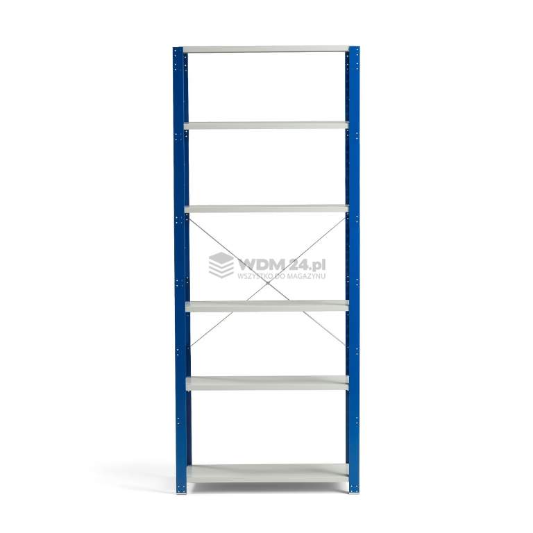Moduły podstawowe wykonano z blachy stalowej lakierowanej proszkowo. Wykończenie lakierem proszkowym zapewnia trwałość oraz odporność na zarysowania i intensywne użytkowanie w trudnych środowiskach. Półki można zamontować zgodnie z wymaganiami i przestawiać w górę lub w dół w odstępach co 50 mm. Do montażu nie potrzeba narzędzi - wystarczy zahaczyć półki na wybranej wysokości. Maksymalne obciążenie każdej półki wynosi 150 kg przy równomiernym rozmieszczeniu ładunku. Moduł podstawowy dostarczamy ze stężeniem tylnym oraz stężeniami bocznymi dla dodatkowej stabilności. Słupki boczne wyposażone są w stopki, które pozwalają zakotwić regał w podłodze.
