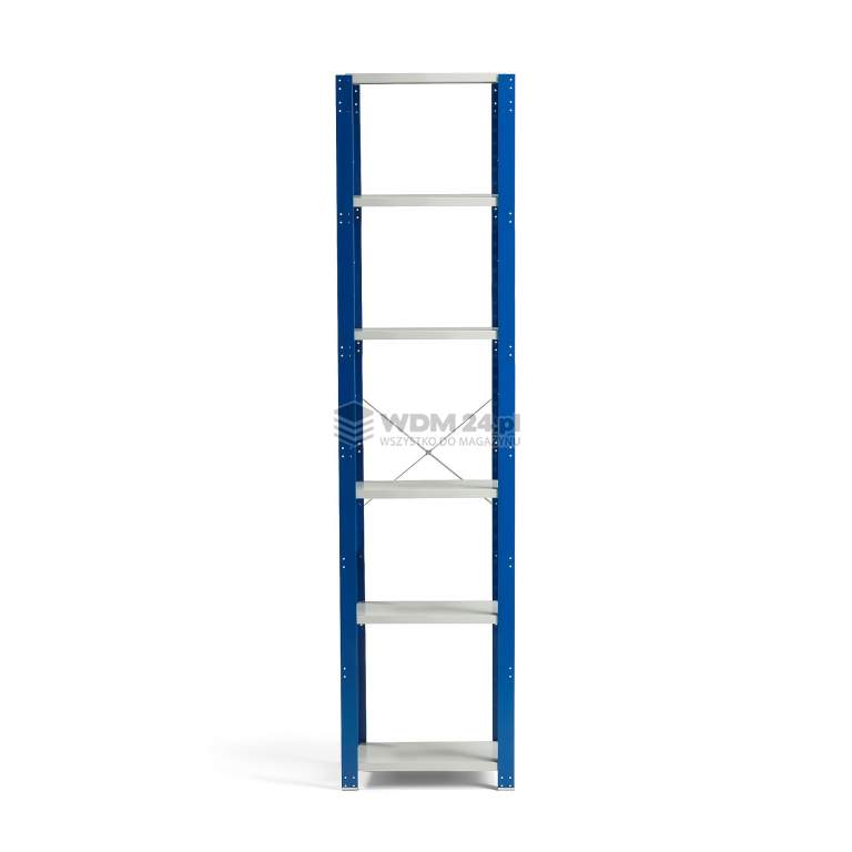 Moduł podstawowy wykonano z blachy stalowej lakierowanej proszkowo. Wykończenie lakierem proszkowym zapewnia trwałość oraz odporność na zarysowania i intensywne użytkowanie w trudnych środowiskach. Półki można zamontować zgodnie z wymaganiami i przestawiać w górę lub w dół w odstępach co 50 mm. Do montażu nie potrzeba narzędzi - wystarczy zahaczyć półki na wybranej wysokości. Maksymalne obciążenie każdej półki wynosi 150 kg przy równomiernym rozmieszczeniu ładunku. Moduł podstawowy dostarczamy ze stężeniem tylnym oraz stężeniami bocznymi dla dodatkowej stabilności. Słupki boczne wyposażone są w stopki, które pozwalają zakotwić regał w podłodze.
