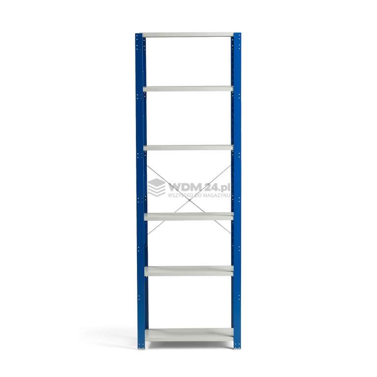 Moduł podstawowy wykonano z blachy stalowej lakierowanej proszkowo. Wykończenie lakierem proszkowym zapewnia trwałość oraz odporność na zarysowania i intensywne użytkowanie w trudnych środowiskach. Półki można zamontować zgodnie z wymaganiami i przestawiać w górę lub w dół w odstępach co 50 mm. Do montażu nie potrzeba narzędzi - wystarczy zahaczyć półki na wybranej wysokości. Maksymalne obciążenie każdej półki wynosi 150 kg przy równomiernym rozmieszczeniu ładunku. Moduł podstawowy dostarczamy ze stężeniem tylnym oraz stężeniami bocznymi dla dodatkowej stabilności. Słupki boczne wyposażone są w stopki, które pozwalają zakotwić regał w podłodze.
