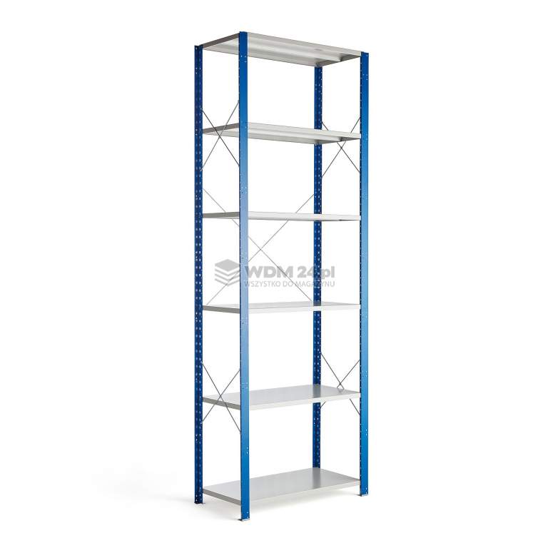 Moduły podstawowe wykonano z blachy stalowej lakierowanej proszkowo. Wykończenie lakierem proszkowym zapewnia trwałość oraz odporność na zarysowania i intensywne użytkowanie w trudnych środowiskach. To Ty decydujesz na jakiej wysokości chcesz umieścić półki. Można je przestawiać w górę i w dół w odstępach co 50 mm. Do montażu nie potrzeba narzędzi - wystarczy zahaczyć półki na wybranej wysokości. Maksymalne obciążenie każdej półki wynosi 150 kg przy równomiernym rozmieszczeniu ładunku. Moduł podstawowy dostarczany jest ze stężeniem tylnym oraz stężeniami bocznymi dla dodatkowej stabilności. Słupki wyposażone w stopki umożliwiające zakotwienie w podłodze.