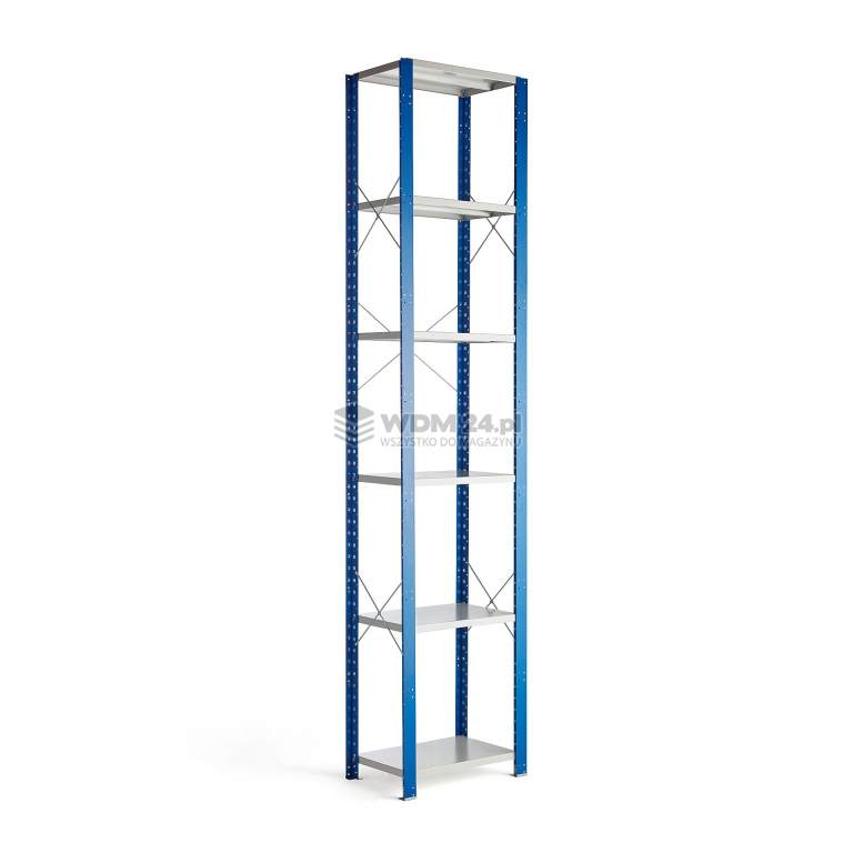 Moduły podstawowe wykonano z blachy stalowej lakierowanej proszkowo. Wykończenie lakierem proszkowym zapewnia trwałość oraz odporność na zarysowania i intensywne użytkowanie w trudnych środowiskach. To Ty decydujesz na jakiej wysokości chcesz umieścić półki. Można je przestawiać w górę i w dół w odstępach co 50 mm. Do montażu nie potrzeba narzędzi - wystarczy zahaczyć półki na wybranej wysokości. Maksymalne obciążenie każdej półki wynosi 150 kg przy równomiernym rozmieszczeniu ładunku. Moduł podstawowy dostarczamy ze stężeniem tylnym oraz stężeniami bocznymi dla dodatkowej stabilności. Słupki wyposażone w stopki umożliwiające zakotwienie w podłodze.