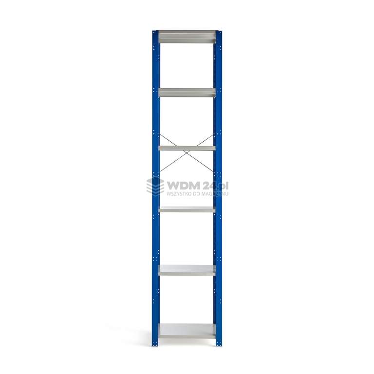 Moduły podstawowe wykonano z blachy stalowej lakierowanej proszkowo. Wykończenie lakierem proszkowym zapewnia trwałość oraz odporność na zarysowania i intensywne użytkowanie w trudnych środowiskach. To Ty decydujesz na jakiej wysokości chcesz umieścić półki. Można je przestawiać w górę i w dół w odstępach co 50 mm. Do montażu nie potrzeba narzędzi - wystarczy zahaczyć półki na wybranej wysokości. Maksymalne obciążenie każdej półki wynosi 150 kg przy równomiernym rozmieszczeniu ładunku. Moduł podstawowy dostarczamy ze stężeniem tylnym oraz stężeniami bocznymi dla dodatkowej stabilności. Słupki wyposażone w stopki umożliwiające zakotwienie w podłodze.
