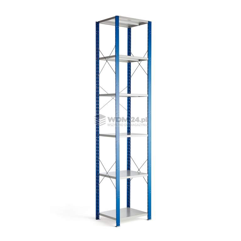 Moduły podstawowe wykonano z blachy stalowej lakierowanej proszkowo. Wykończenie lakierem proszkowym zapewnia trwałość oraz odporność na zarysowania i intensywne użytkowanie w trudnych środowiskach. To Ty decydujesz na jakiej wysokości chcesz umieścić półki. Można je przestawiać w górę i w dół w odstępach co 50 mm. Do montażu nie potrzeba narzędzi - wystarczy zahaczyć półki na wybranej wysokości. Maksymalne obciążenie każdej półki wynosi 150 kg przy równomiernym rozmieszczeniu ładunku. Moduł podstawowy dostarczamy ze stężeniem tylnym oraz stężeniami bocznymi dla dodatkowej stabilności. Słupki wyposażone w stopki umożliwiające zakotwienie w podłodze.