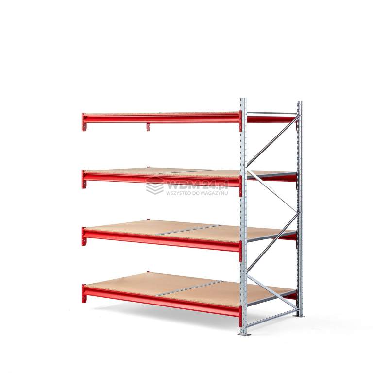 Prezentowany moduł dodatkowy posiada jedną ramę oraz cztery półki i osiem belek nośnych. Każda półka jest podzielona na sekcje dla ułatwienia montażu: półki o szerokości 1800 mm - 2 sekcje z płyty na parę belek nośnych.