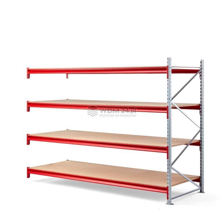 Prezentowany moduł dodatkowy posiada jedną ramę oraz cztery półki i osiem belek nośnych. Każda półka jest podzielona na sekcje dla ułatwienia montażu: półki o szerokości 2700 mm - 3 sekcje z płyty na parę belek nośnych.
