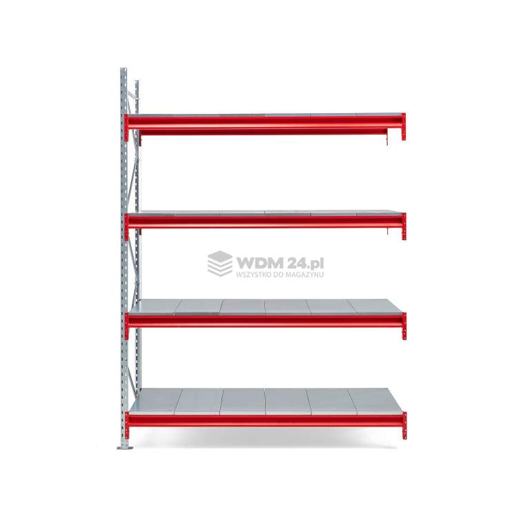 Prezentowany moduł dodatkowy posiada jedną ramę oraz cztery półki i osiem belek nośnych. Każda półka jest podzielona na sekcje dla ułatwienia montażu: półki o szerokości 1800 mm - 6 sekcji półki na parę belek nośnych.