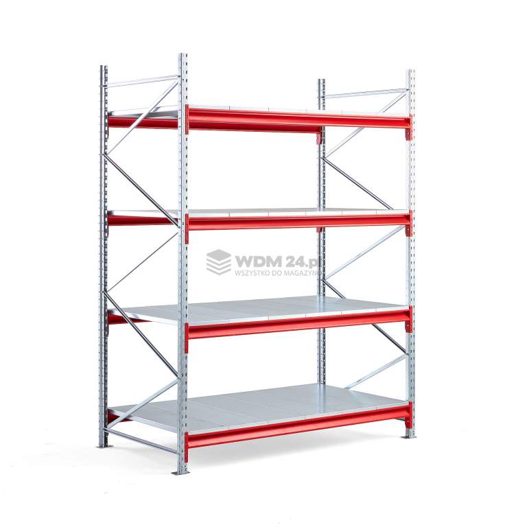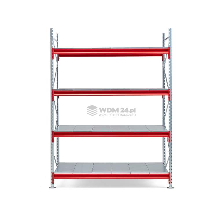 Prezentowany moduł podstawowy posiada cztery półki, dwie ramy i osiem belek nośnych. Każda półka jest podzielona na sekcje dla ułatwienia montażu: półki o szerokości 1800 mm - 6 sekcji półki na parę belek nośnych.