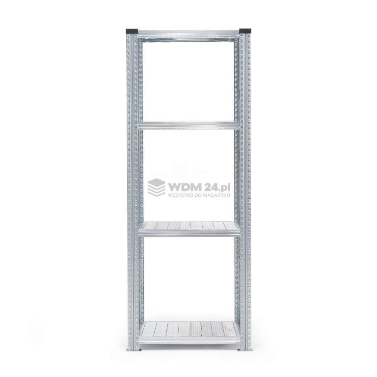 Regał magazynowy z 4 półkami i 2 ramami. Ramy dostarczane w stanie zmontowanym. Montaż nie wymaga śrub ani narzędzi. Wszechstronny i funkcjonalny regał magazynowy. Zbuduj system regałów, ściśle dostosowany do potrzeb twojej firmy w zakresie przechowywania. Prezentowany regał idealnie sprawdzi się w logistyce, środowisku magazynowym, warsztatowym itp. ale także w biurach i sklepach. Ramy dostarczane w stanie zmontowanym dla łatwiejszej instalacji. Wystarczy zawiesić półki między słupkami. Moduł podstawowy składa się z ram ze wzmocnieniami boków oraz 4 półek. Każda półka ma szerokość 600 mm i wytrzymuje maksymalne równomierne obciążenie 90 kg. Wysokość półek można dowolnie regulować, co ułatwia modyfikację systemu i dostosowanie do potrzeb. Wybierz między kilkoma głębokościami półek, dodaj moduły dodatkowe lub dodatkowe półki (sprzedawane oddzielnie - patrz sekcja akcesoria). Uwaga! Szerokość całkowita stanowi szerokość półki + 75 mm dla modułu podstawowego oraz szerokość półki + 10 mm dla modułów dodatkowych.