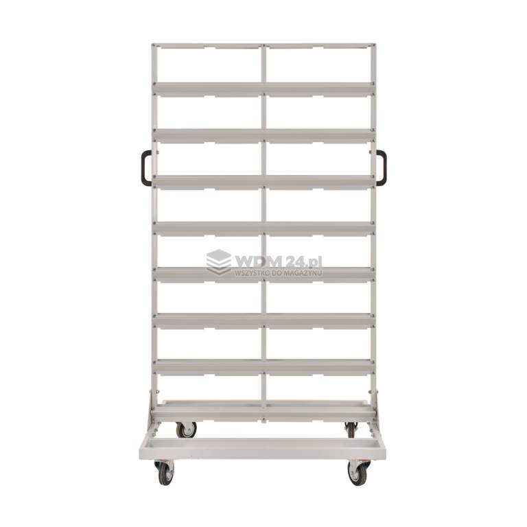 Dzięki osadzeniu konstrukcji na kółkach, a także uchwytom po obu stronach regału, można go swobodnie przesuwać. Mobilność regału czyni go bardzo użytecznym w pracy. Pracownik który z niego korzysta, może ustawić go zawsze tam, gdzie tego najbardziej potrzebuje.