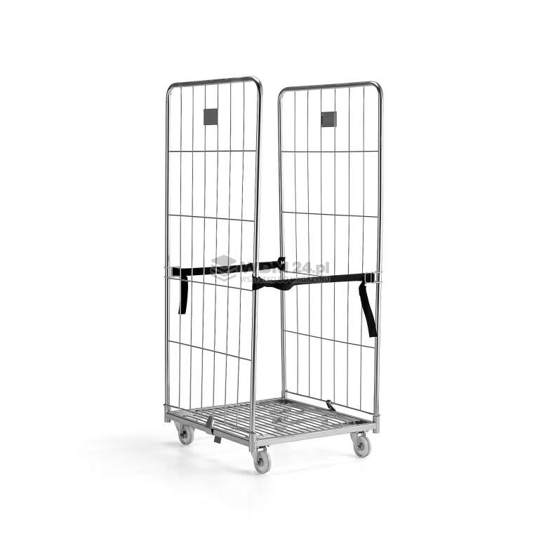 Wytrzymały rollkontener z dwiema ścianami, odpowiedni do wielu zastosowań podczas transportu towarów i paczek. W zestawie znajdują się dwa pasy zabezpieczające, które zapobiegają wypadaniu ładunku. Wszechstronny i trwały rollkontener to idealne rozwiązanie do transportu paczek, skrzynek i innych towarów.